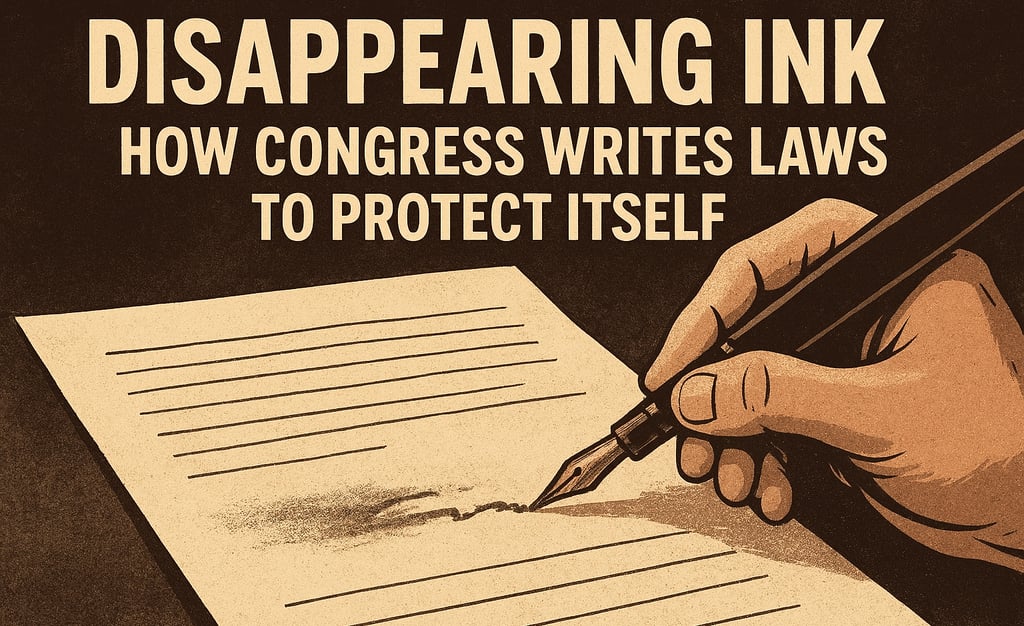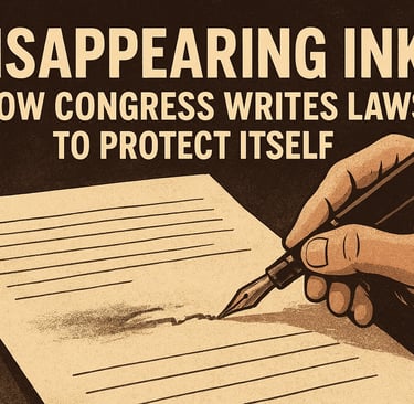 "Disappearing Ink” pulls back the curtain on how Congress crafts laws that vanish when accountability knocks. It’s a deep dive into the art of legislative misdirection—and a sharp contrast between those who serve the people and those who serve themselves.